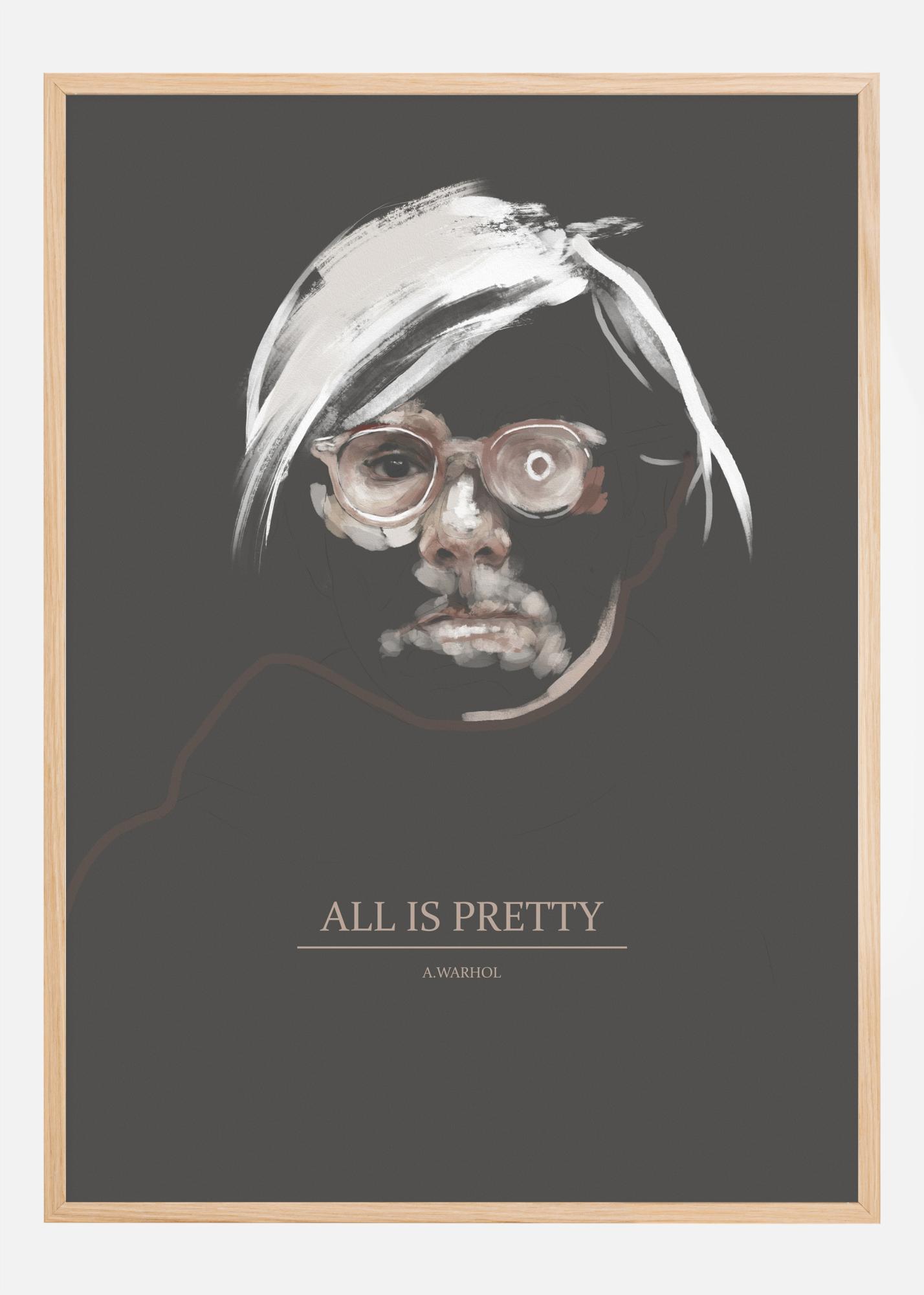 Un portrait de l'artiste Andy Warhol. Cette affiche montre la chevelure blanche et se concentre sur ses yeux d’artiste, l'un calme, l'autre sauvage. En bas, le slogan All is Pretty vous offre une citation et un message inspirants chaque fois que vous passez devant cette affiche, chez vous.
