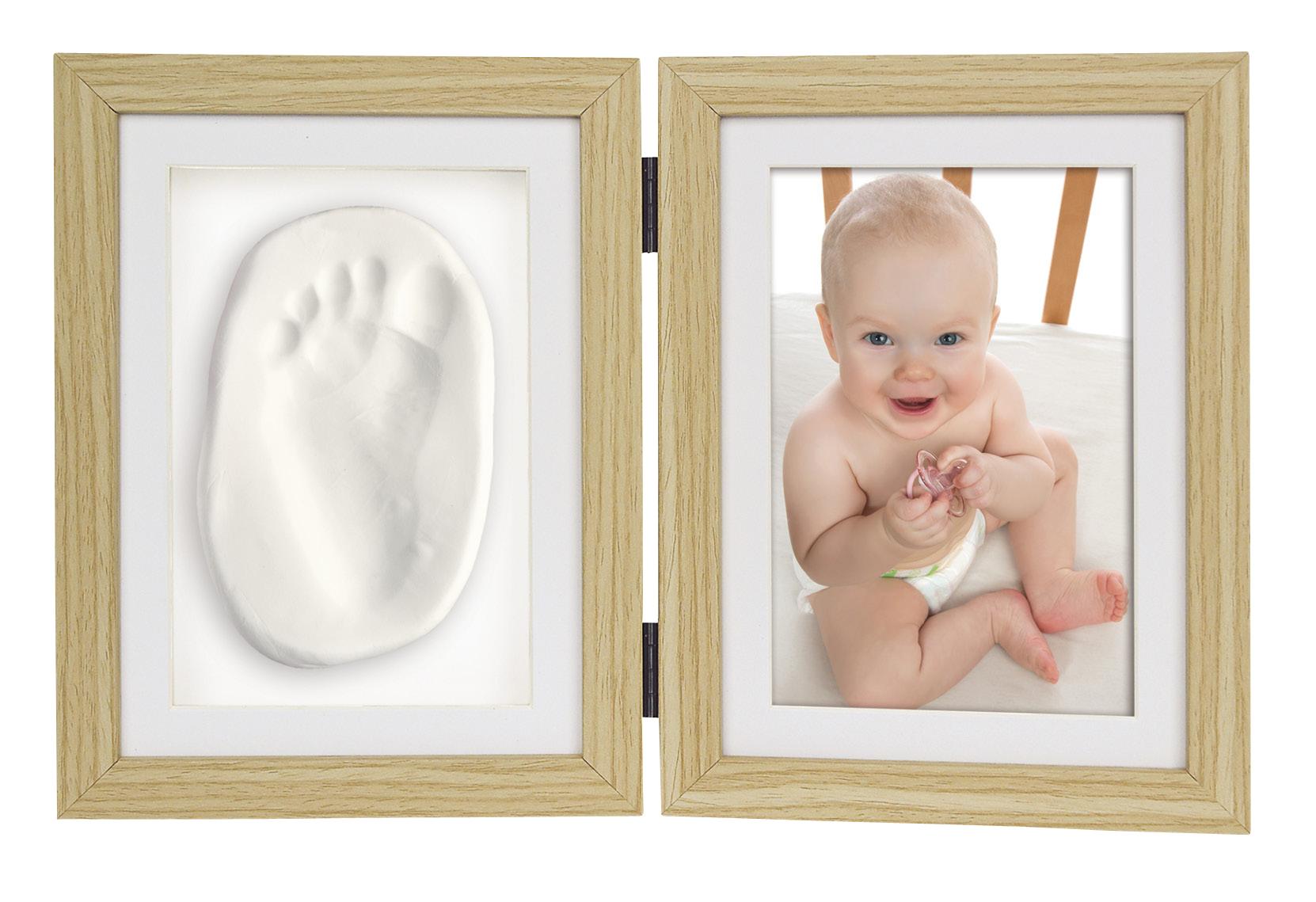 Vous ferez certainement craquer quelqu’un devant tant de mignonnerie lorsque vous montrerez ce ravissant cadre pliant, qui convient à la fois à une photo de votre enfant et une empreinte de pied ou de main ! Le cadre est en bois, est maintenu par des charnières et possède 2 ouvertures. Un kit de plâtre est inclus, que vous utilisez pour créer une jolie empreinte de main ou de pied.