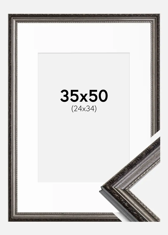 Cadre Abisko Argent 35x50 cm - Passe-partout Blanc 25x35 cm