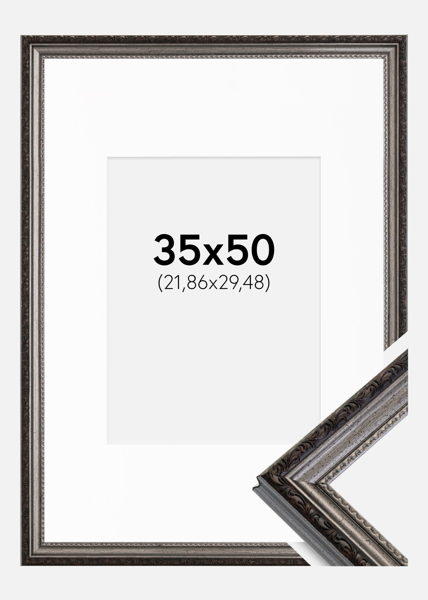 Cadre Abisko Argent 35x50 cm - Passe-partout Blanc 9x12 pouces
