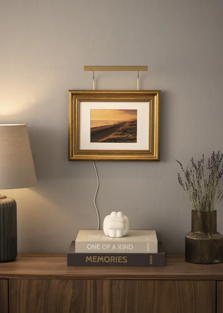 Éclairage de tableau exclusif de haute qualité avec éclairage LED. Parfait lorsque vous recherchez un superbe éclairage de tableau qui donne une dimension supplémentaire à vos plus belles photos. L'éclairage est fabriqué en Suède, ce qui garantit une haute qualité.