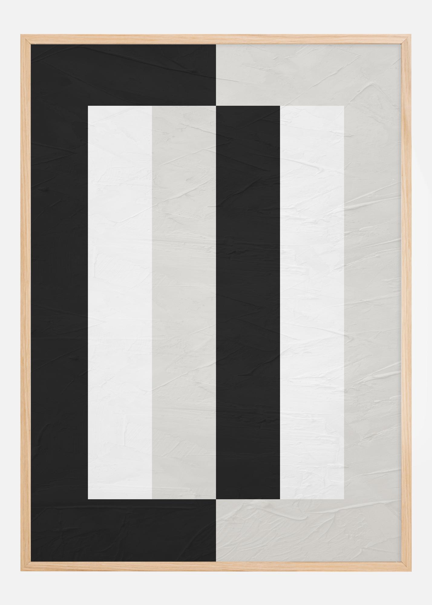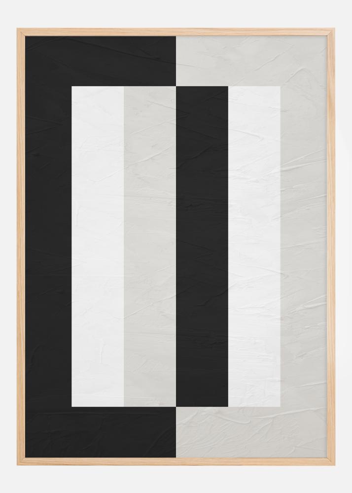 Ce poster sophistiqué présente une composition audacieuse et graphique qui capte immédiatement l'attention du spectateur. La combinaison contrastée de noir et blanc forme une série de lignes et de blocs verticaux, créant une illusion d'optique de profondeur et de mouvement. Cette affiche est idéale pour le décorateur moderne qui recherche une œuvre d'art marquante transmettant une sensation d'élégance et de design contemporain. La palette de couleurs sobre permet d'intégrer facilement cette image dans différentes pièces et environnements.