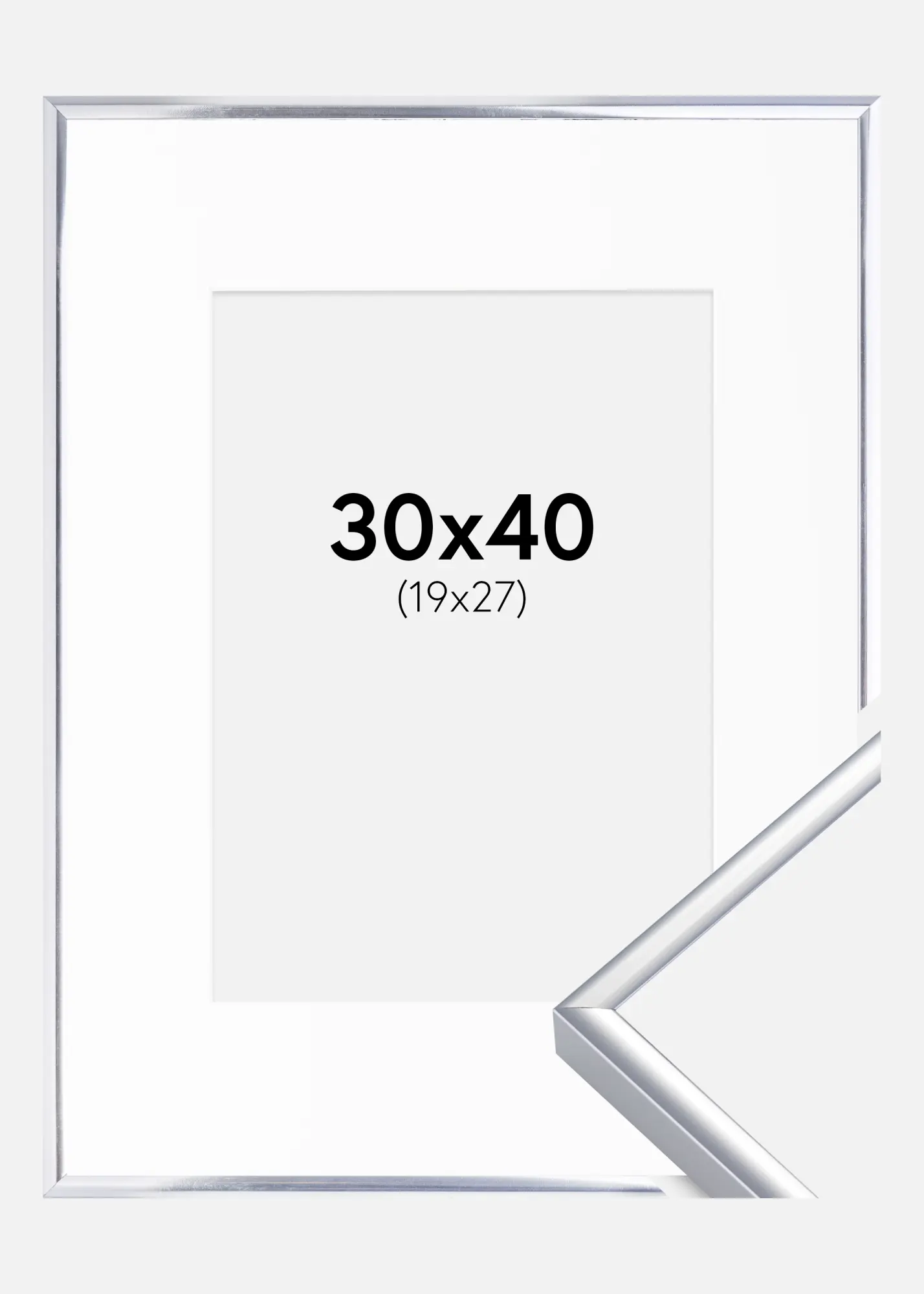 Cadre Aluminium Brillant Argent 30x40 cm - Passe-partout Blanc 20x28 cm