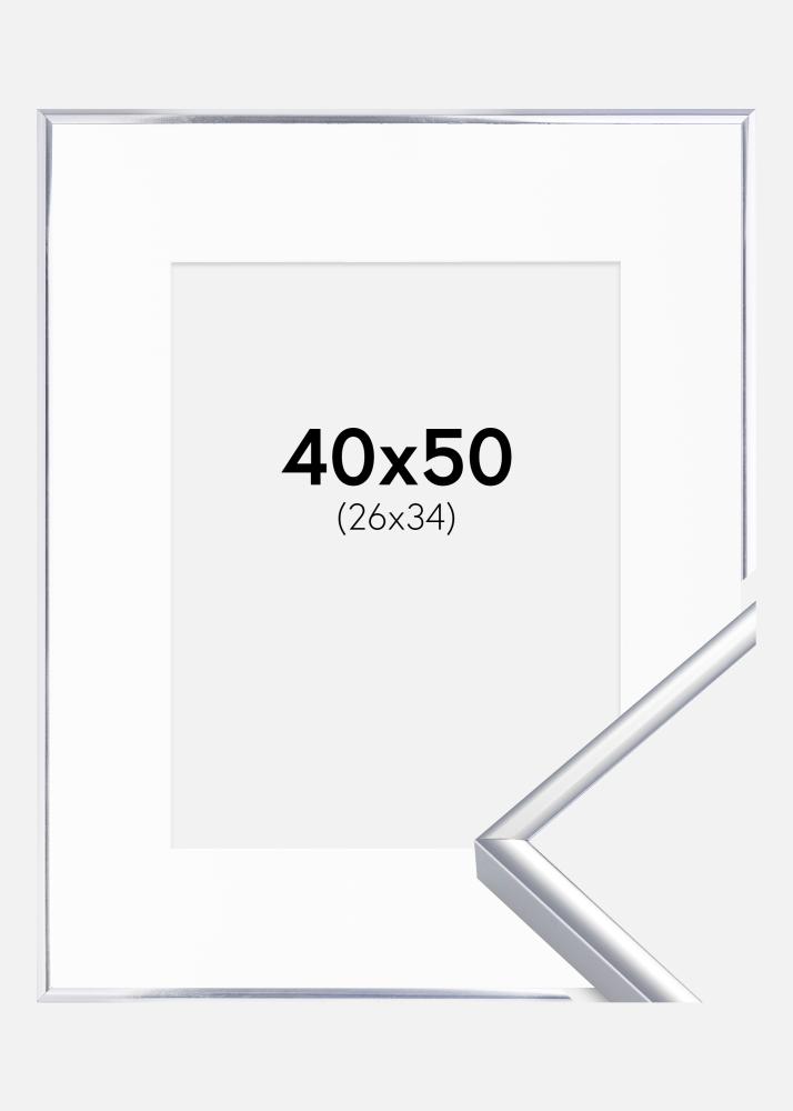 Cadre Aluminium Brillant Argent 40x50 cm - Passe-partout Blanc 27x35 cm