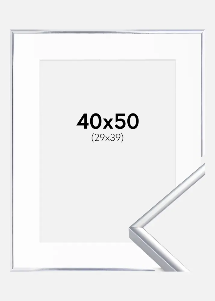 Cadre Aluminium Brillant Argent 40x50 cm - Passe-partout Blanc 30x40 cm