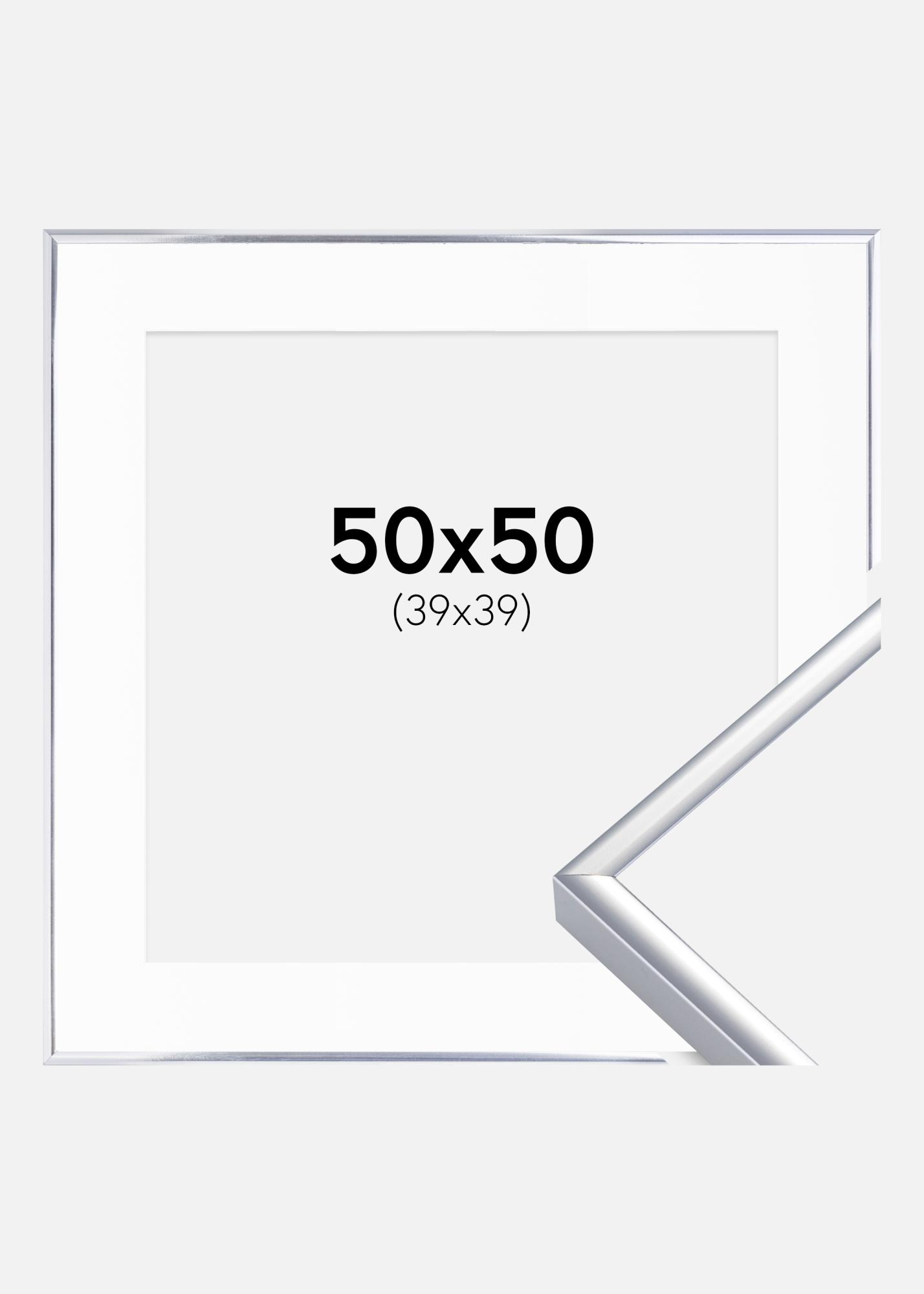Cadre Aluminium Brillant Argent 50x50 cm - Passe-partout Blanc 40x40 cm