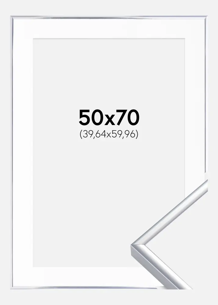 Forfait comprenant le cadre photo et le passe-partout blanc assorti. Sur la photo du produit, vous pouvez voir les dimensions du cadre (indiquées en gras) et les dimensions intérieures du passe-partout (indiquées entre parenthèses). Notez que les dimensions intérieures du passe-partout se doivent d'être toujours 1 cm inférieures par rapport à la taille de l'image que vous souhaitez encadrer.