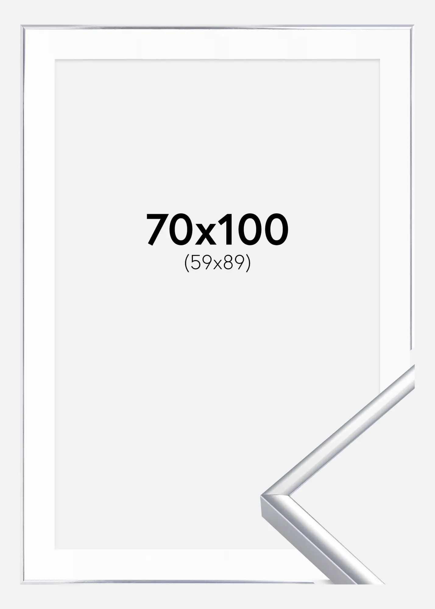 Cadre Aluminium Brillant Argent 70x100 cm - Passe-partout Blanc 60x90 cm