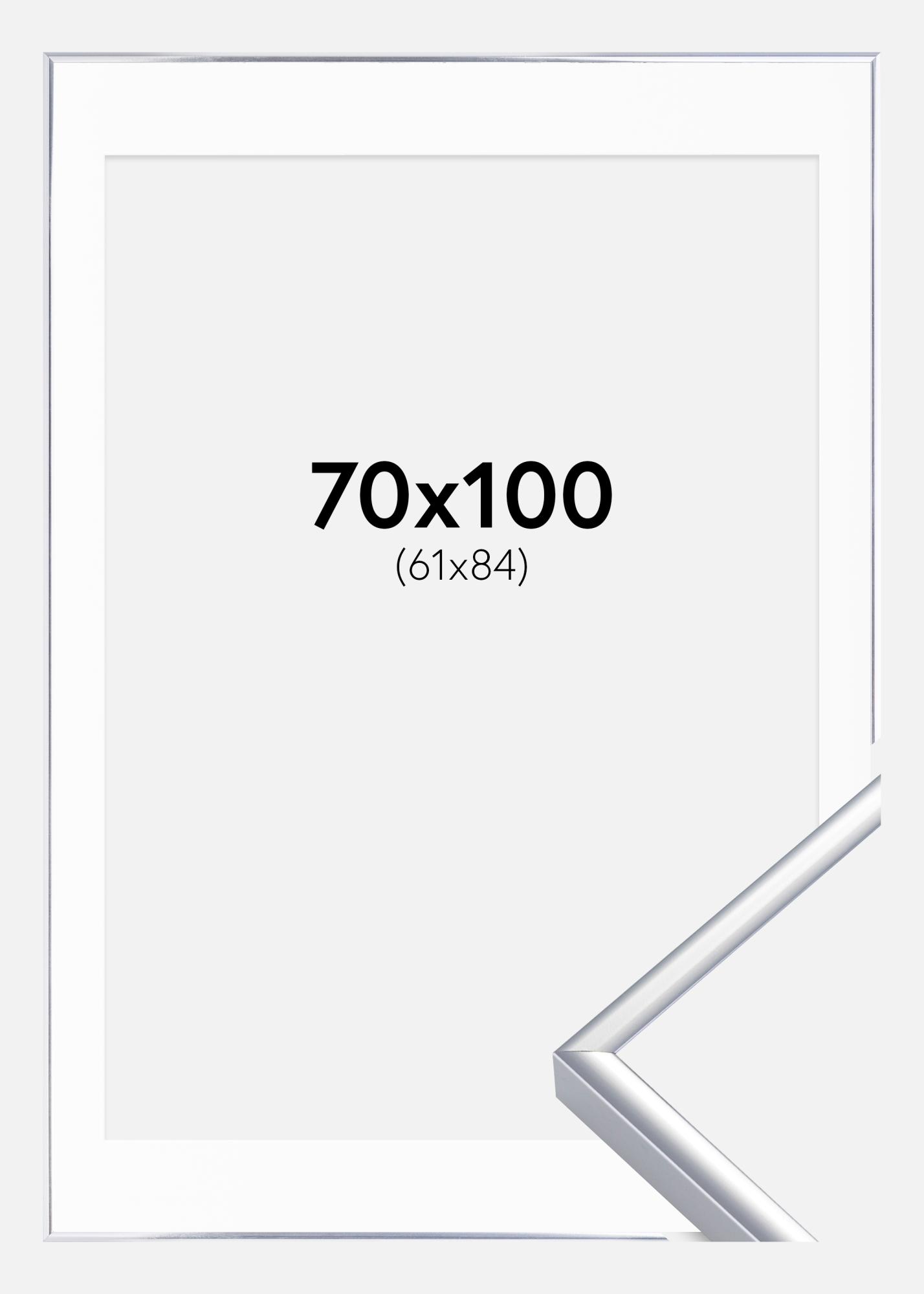 Cadre Aluminium Brillant Argent 70x100 cm - Passe-partout Blanc 62x85 cm