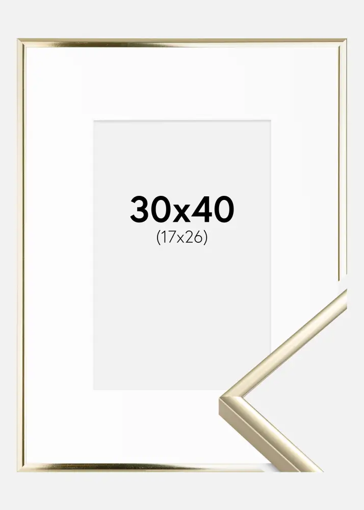 Cadre Aluminium Brillant Or 30x40 cm - Passe-partout Blanc 18x27 cm