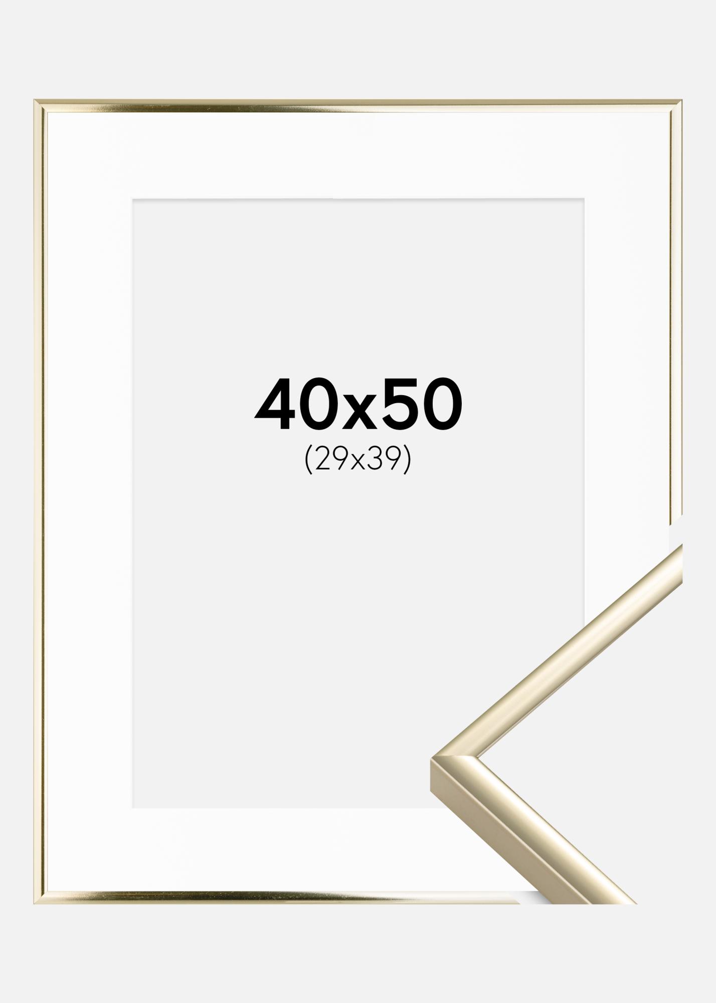 Cadre Aluminium Brillant Or 40x50 cm - Passe-partout Blanc 30x40 cm
