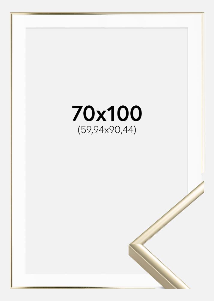 Cadre Aluminium Brillant Or 70x100 cm - Passe-partout Blanc 24x36 pouces