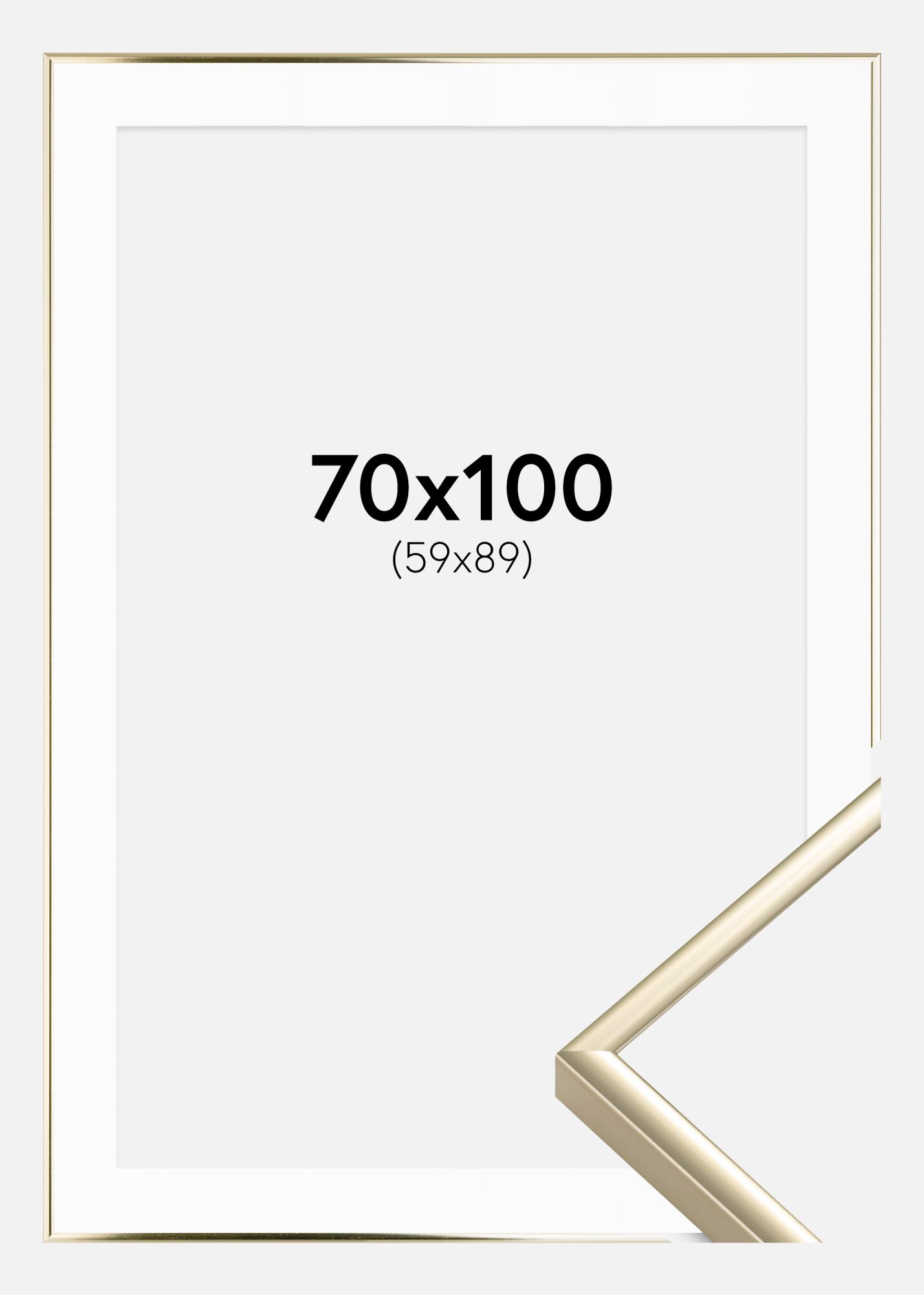 Cadre Aluminium Brillant Or 70x100 cm - Passe-partout Blanc 60x90 cm
