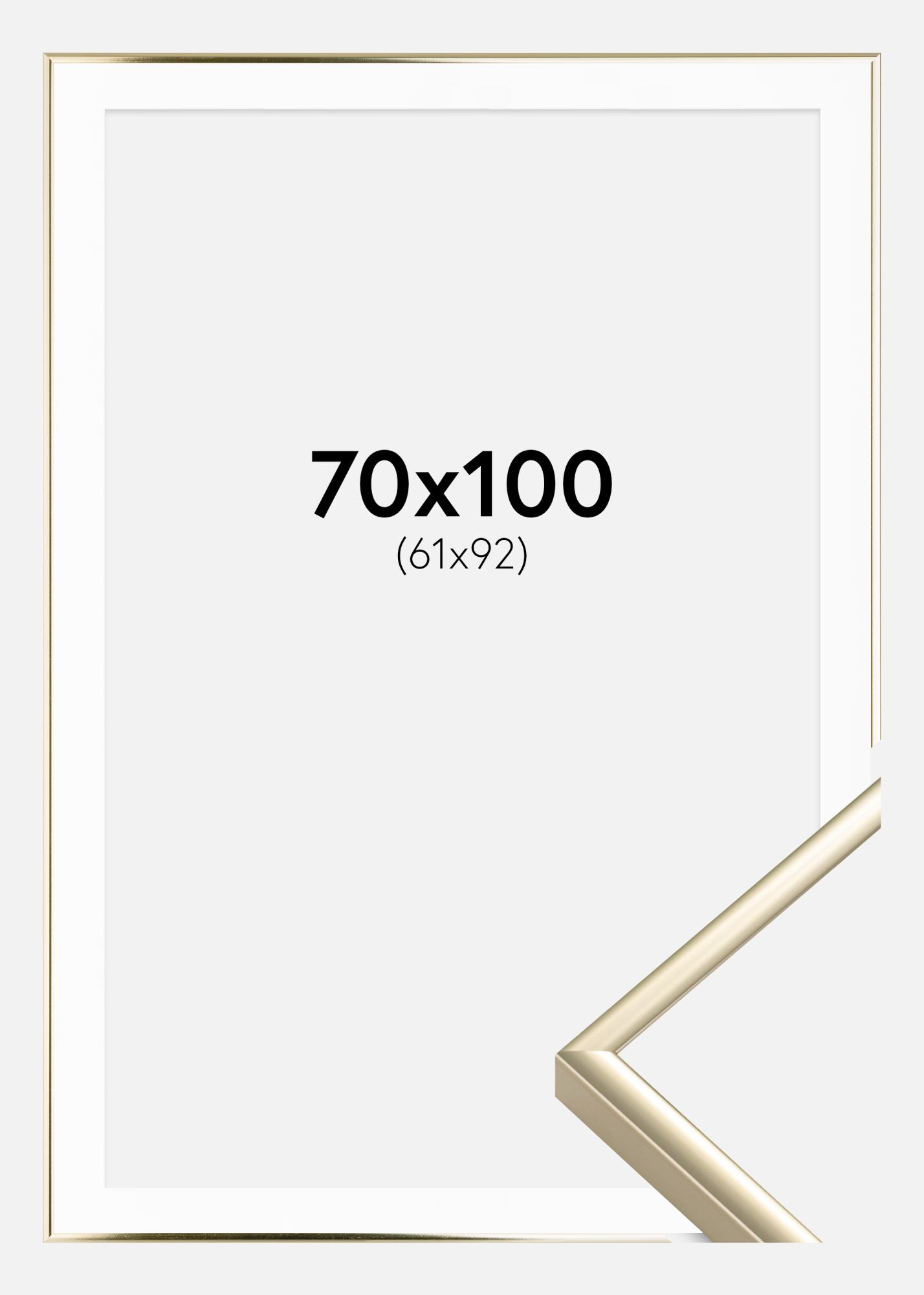 Cadre Aluminium Brillant Or 70x100 cm - Passe-partout Blanc 62x93 cm