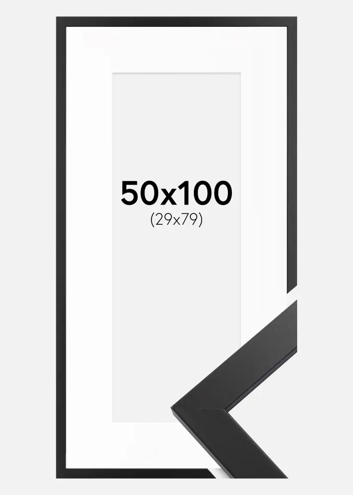 Cadre Black Wood 50x100 cm - Passe-partout Blanc 30x80 cm