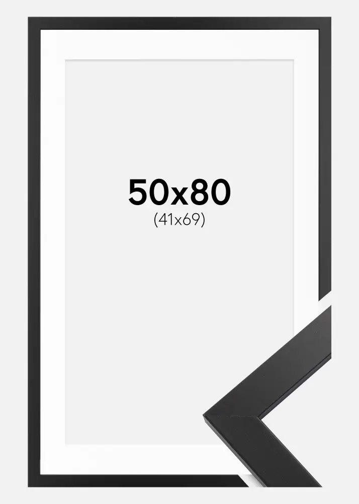 Cadre Black Wood 50x80 cm - Passe-partout Blanc 42x70 cm