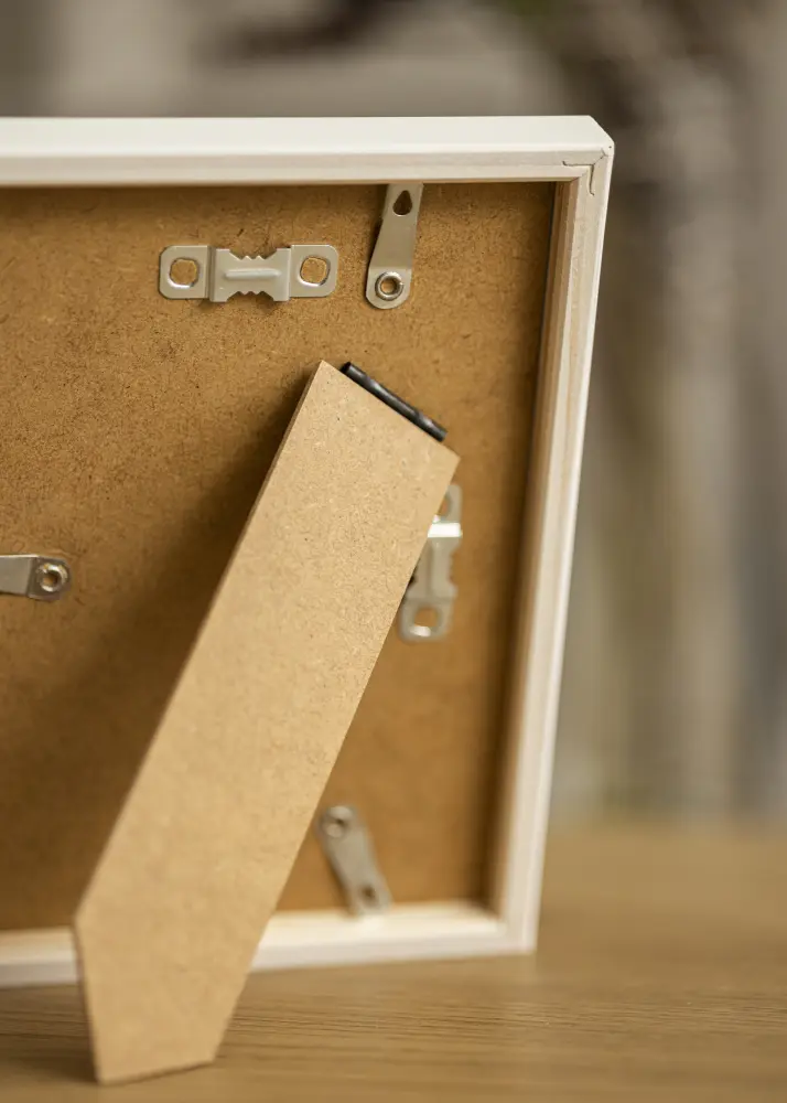 Forfait comprenant le cadre photo et le passe-partout blanc assorti. Sur la photo du produit, vous pouvez voir les dimensions du cadre (indiquées en gras) et les dimensions intérieures du passe-partout (indiquées entre parenthèses). Notez que les dimensions intérieures du passe-partout se doivent d'être toujours 1 cm inférieures par rapport à la taille de l'image que vous souhaitez encadrer.