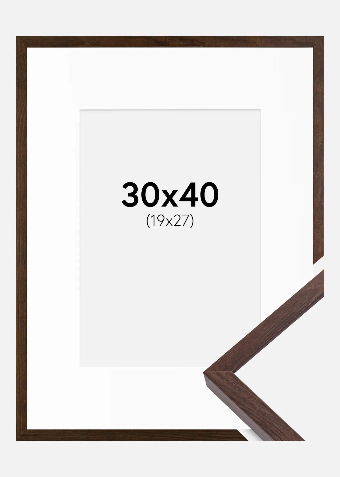 Cadre E-Line Noyer 30x40 cm - Passe-partout Blanc 20x28 cm