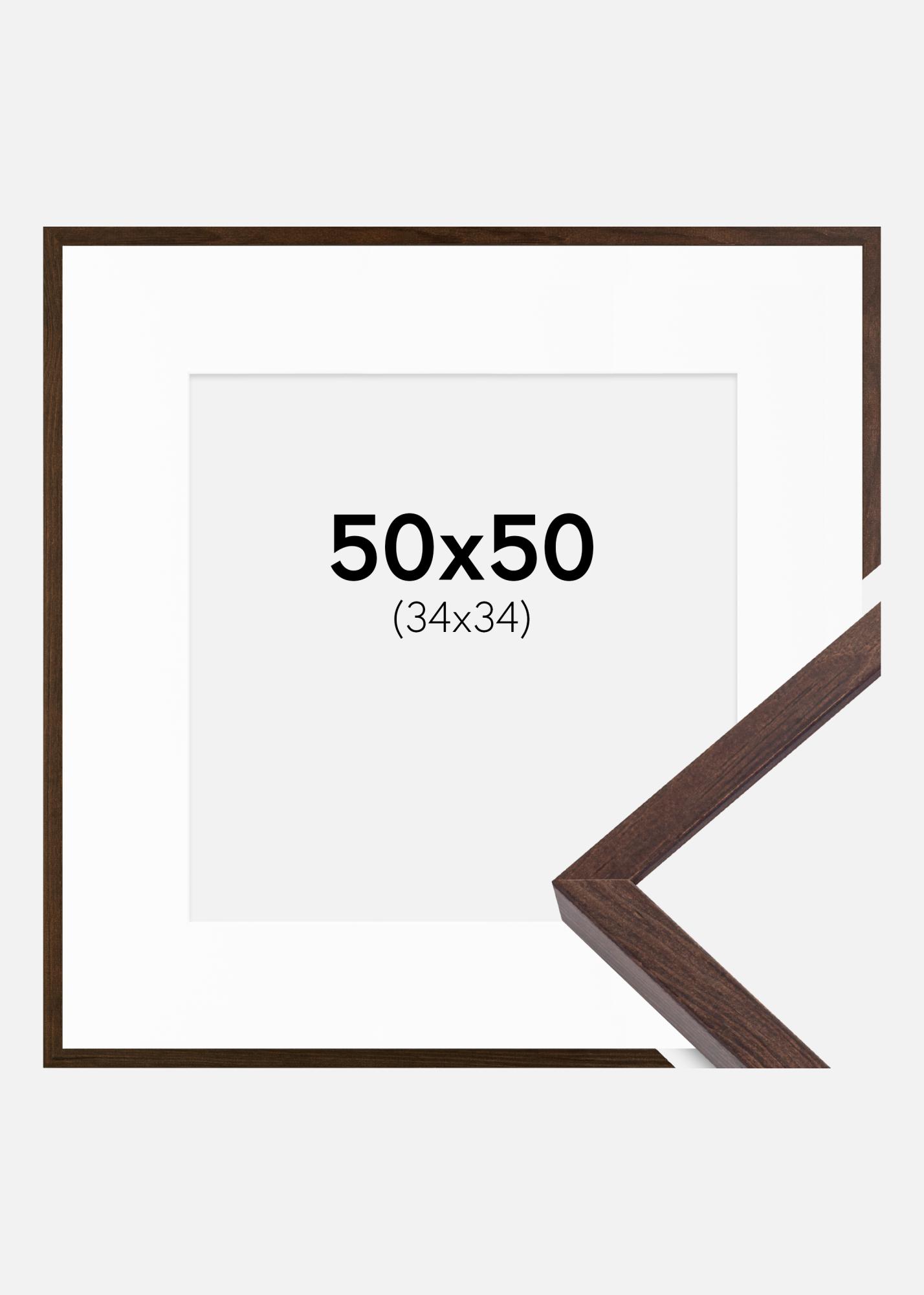 Cadre E-Line Noyer 50x50 cm - Passe-partout Blanc 35x35 cm