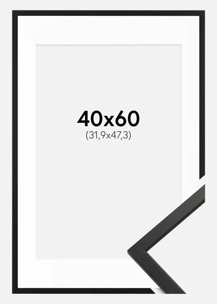 Cadre Edsbyn Verre acrylique Noir 40x60 cm - Passe-partout Blanc 32,9x48,3 cm