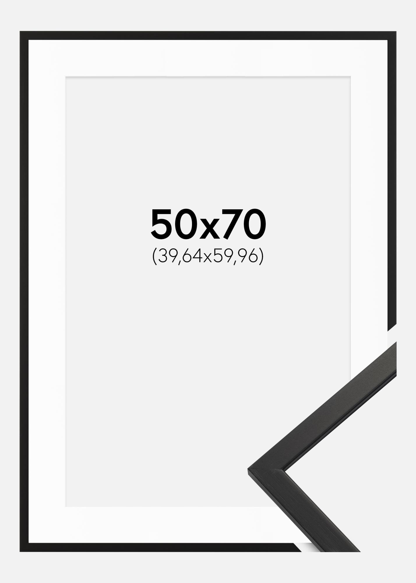 Forfait comprenant le cadre photo et le passe-partout blanc assorti. Sur la photo du produit, vous pouvez voir les dimensions du cadre (indiquées en gras) et les dimensions intérieures du passe-partout (indiquées entre parenthèses). Notez que les dimensions intérieures du passe-partout se doivent d'être toujours 1 cm inférieures par rapport à la taille de l'image que vous souhaitez encadrer.