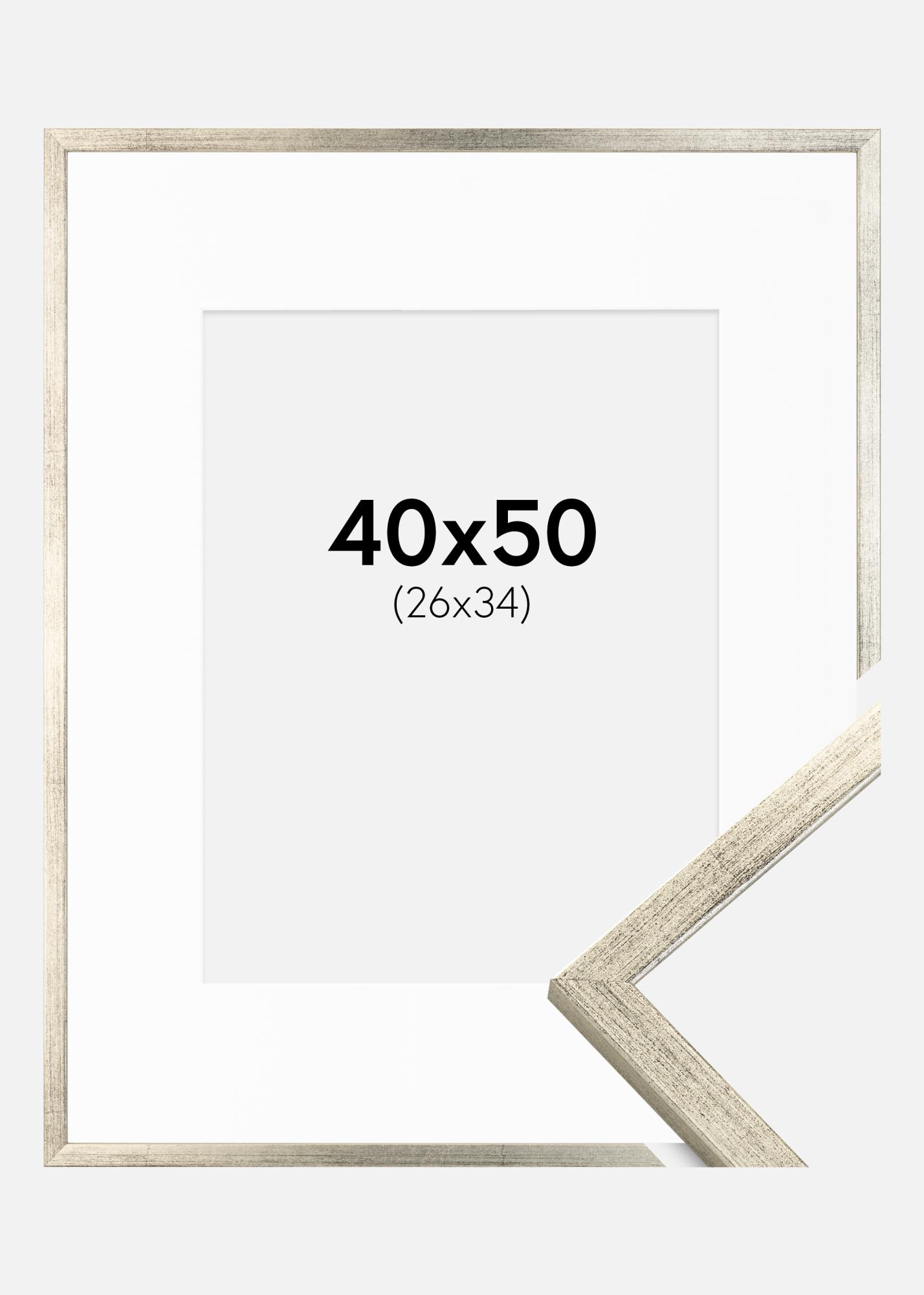 Cadre Galant Argent 40x50 cm - Passe-partout Blanc 27x35 cm
