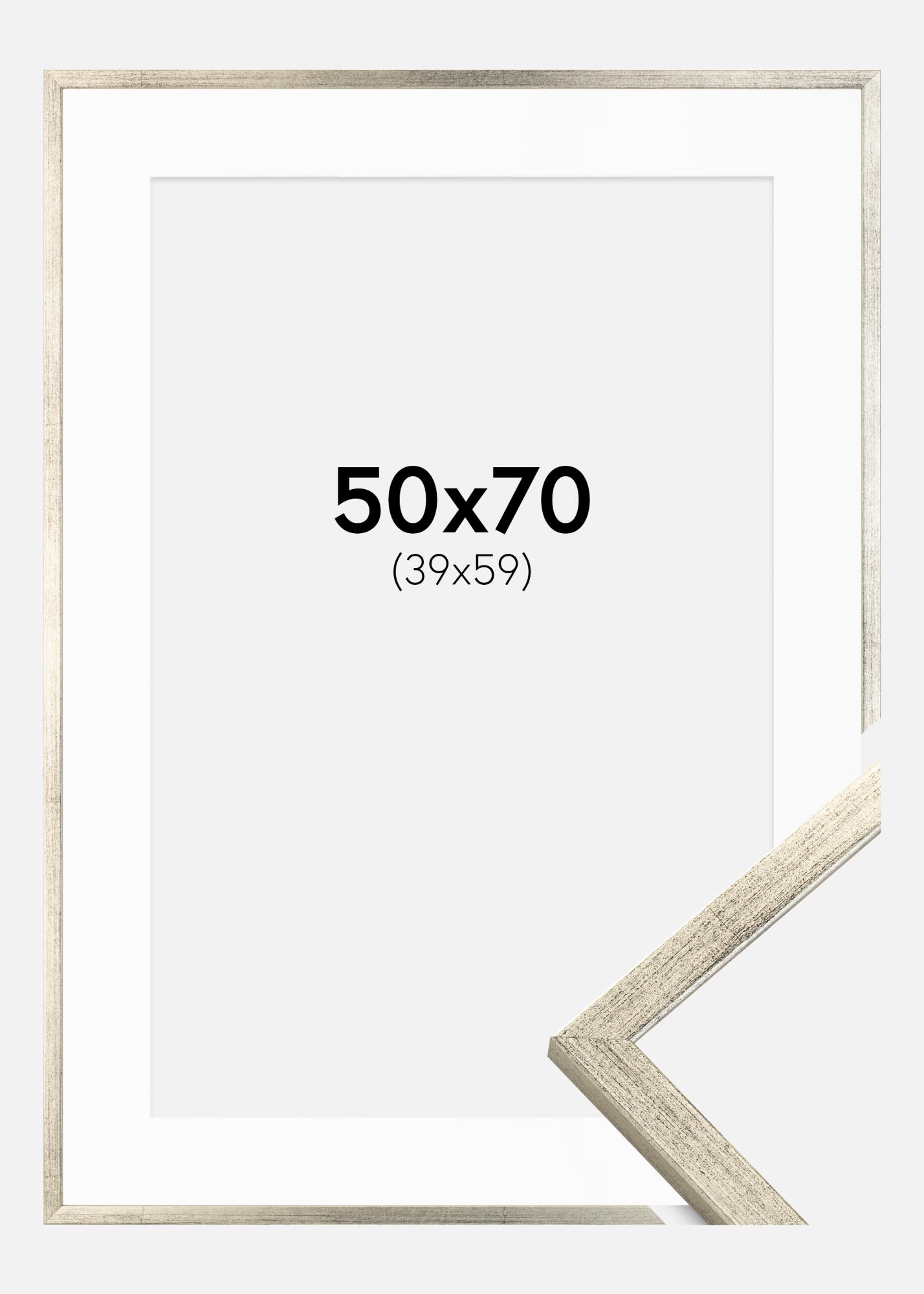 Cadre Galant Argent 50x70 cm - Passe-partout Blanc 40x60 cm