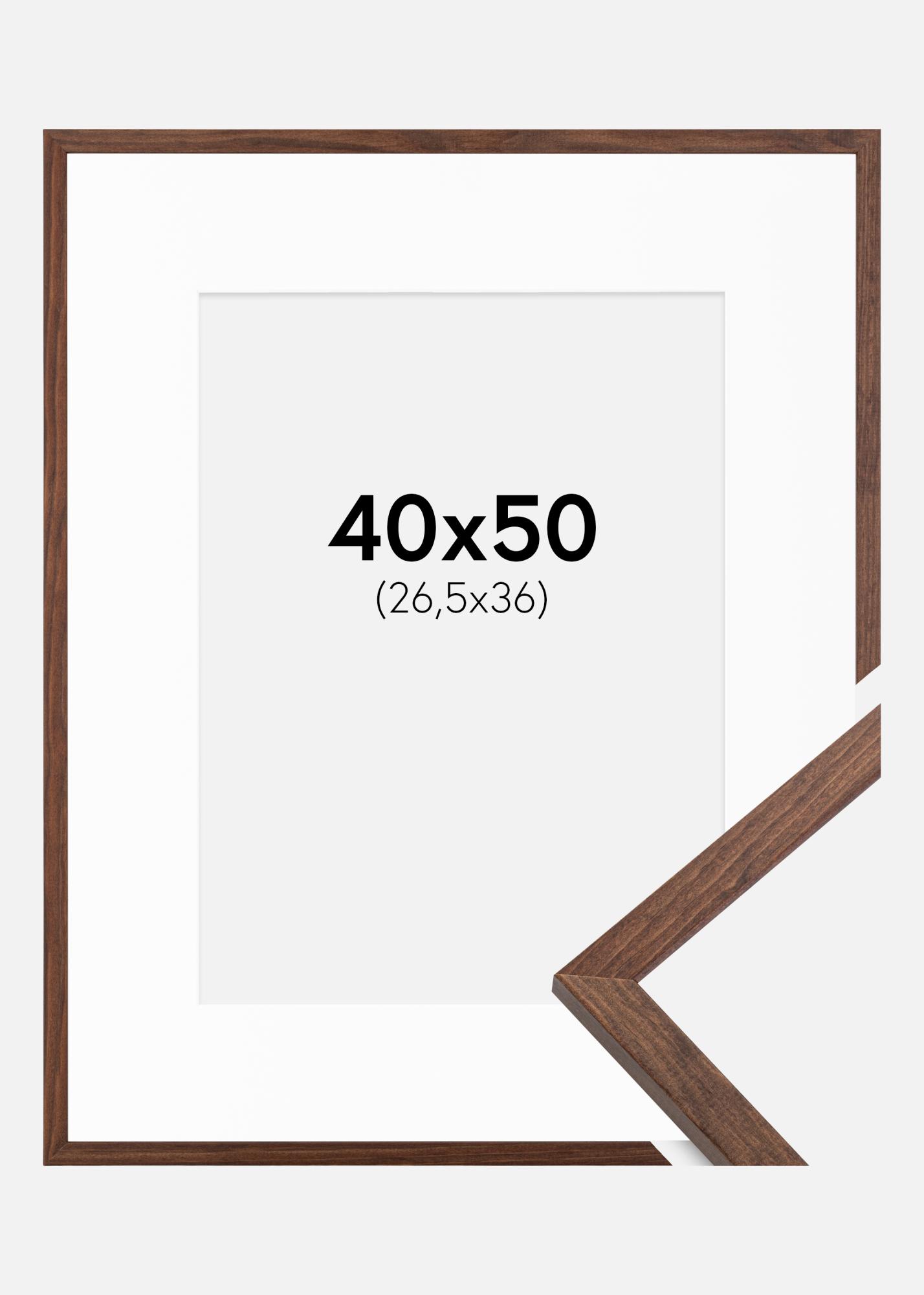 Cadre Galant Noyer 40x50 cm - Passe-partout Blanc 27,5x37 cm