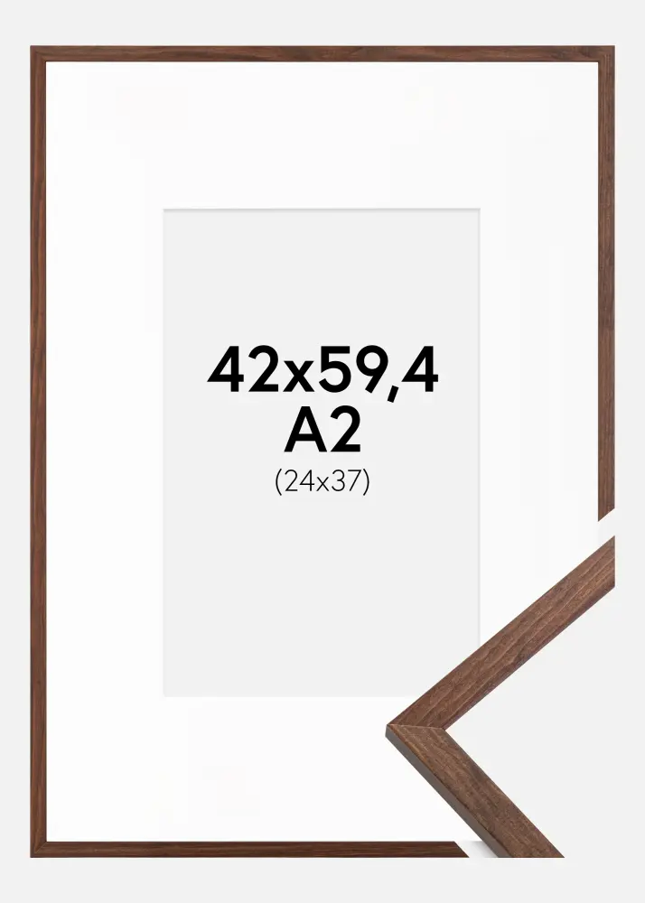 Cadre Galant Noyer 42x59,4 cm (A2) - Passe-partout Blanc 25x38 cm