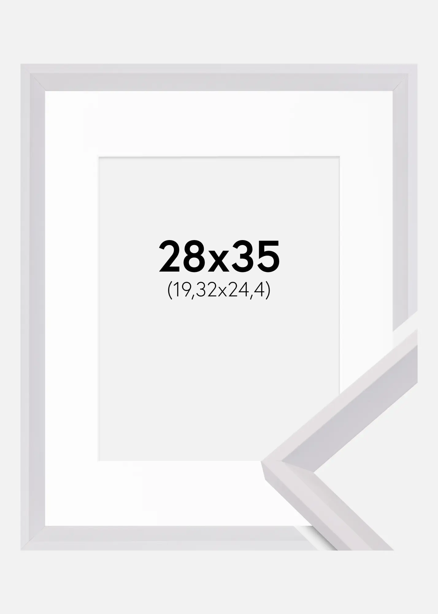 Forfait comprenant le cadre photo et le passe-partout blanc assorti. Sur la photo du produit, vous pouvez voir les dimensions du cadre (indiquées en gras) et les dimensions intérieures du passe-partout (indiquées entre parenthèses). Notez que les dimensions intérieures du passe-partout se doivent d'être toujours 1 cm inférieures par rapport à la taille de l'image que vous souhaitez encadrer.
