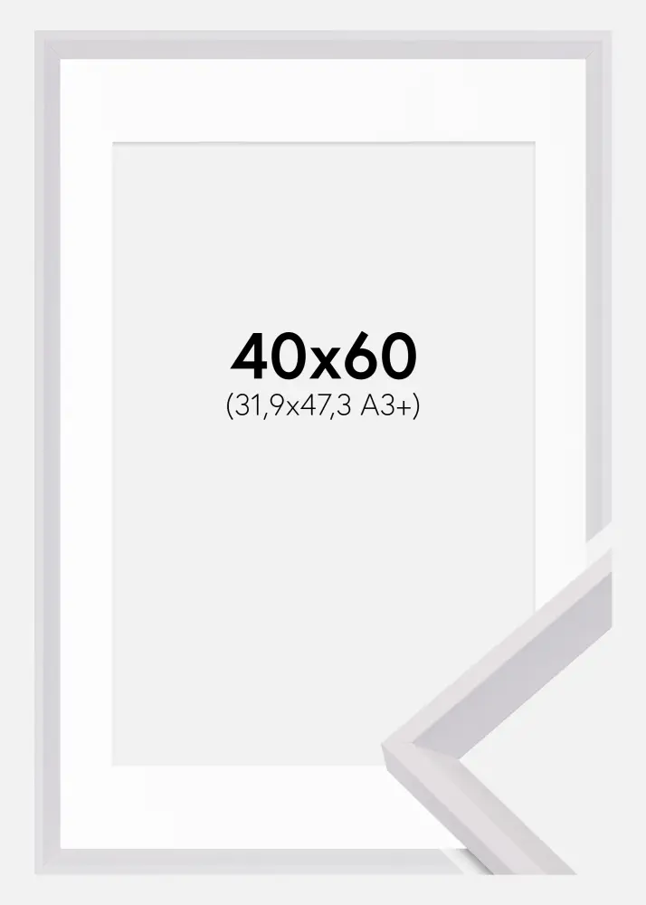 Cadre Globe Blanc 40x60 cm - Passe-partout Blanc 32,9x48,3 cm (A3+)