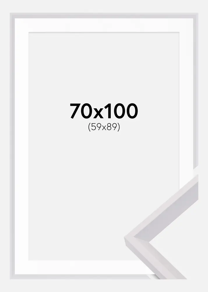 Forfait comprenant le cadre photo et le passe-partout blanc assorti. Sur la photo du produit, vous pouvez voir les dimensions du cadre (indiquées en gras) et les dimensions intérieures du passe-partout (indiquées entre parenthèses). Notez que les dimensions intérieures du passe-partout se doivent d'être toujours 1 cm inférieures par rapport à la taille de l'image que vous souhaitez encadrer.