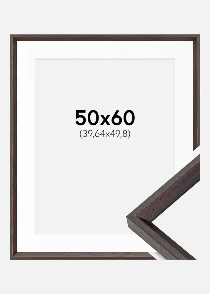 Forfait comprenant le cadre photo et le passe-partout blanc assorti. Sur la photo du produit, vous pouvez voir les dimensions du cadre (indiquées en gras) et les dimensions intérieures du passe-partout (indiquées entre parenthèses). Notez que les dimensions intérieures du passe-partout se doivent d'être toujours 1 cm inférieures par rapport à la taille de l'image que vous souhaitez encadrer.
