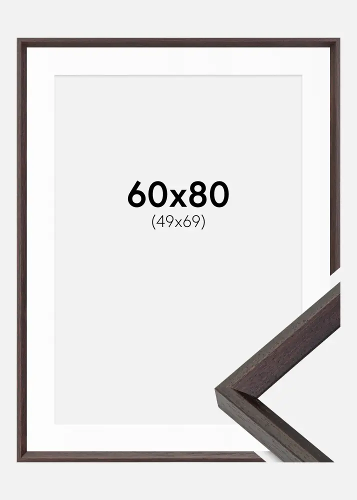 Forfait comprenant le cadre photo et le passe-partout blanc assorti. Sur la photo du produit, vous pouvez voir les dimensions du cadre (indiquées en gras) et les dimensions intérieures du passe-partout (indiquées entre parenthèses). Notez que les dimensions intérieures du passe-partout se doivent d'être toujours 1 cm inférieures par rapport à la taille de l'image que vous souhaitez encadrer.