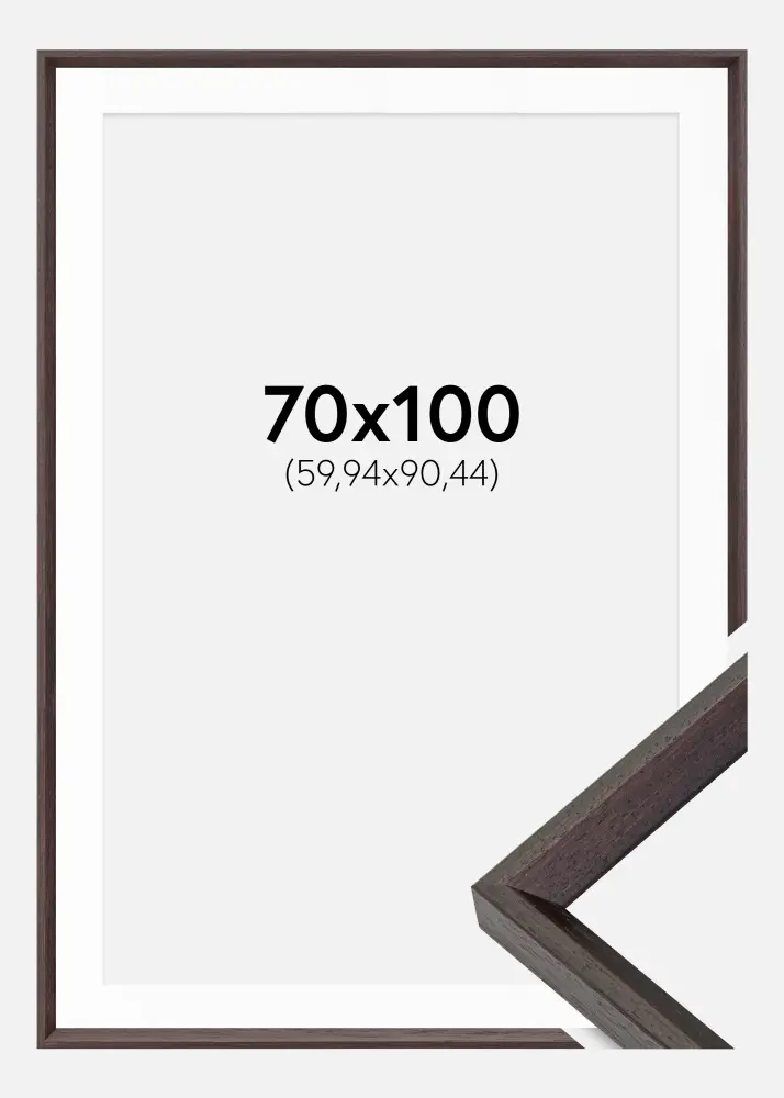Forfait comprenant le cadre photo et le passe-partout blanc assorti. Sur la photo du produit, vous pouvez voir les dimensions du cadre (indiquées en gras) et les dimensions intérieures du passe-partout (indiquées entre parenthèses). Notez que les dimensions intérieures du passe-partout se doivent d'être toujours 1 cm inférieures par rapport à la taille de l'image que vous souhaitez encadrer.