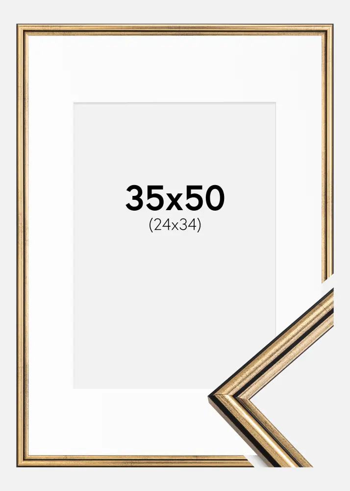 Cadre Horndal Or 35x50 cm - Passe-partout Blanc 25x35 cm