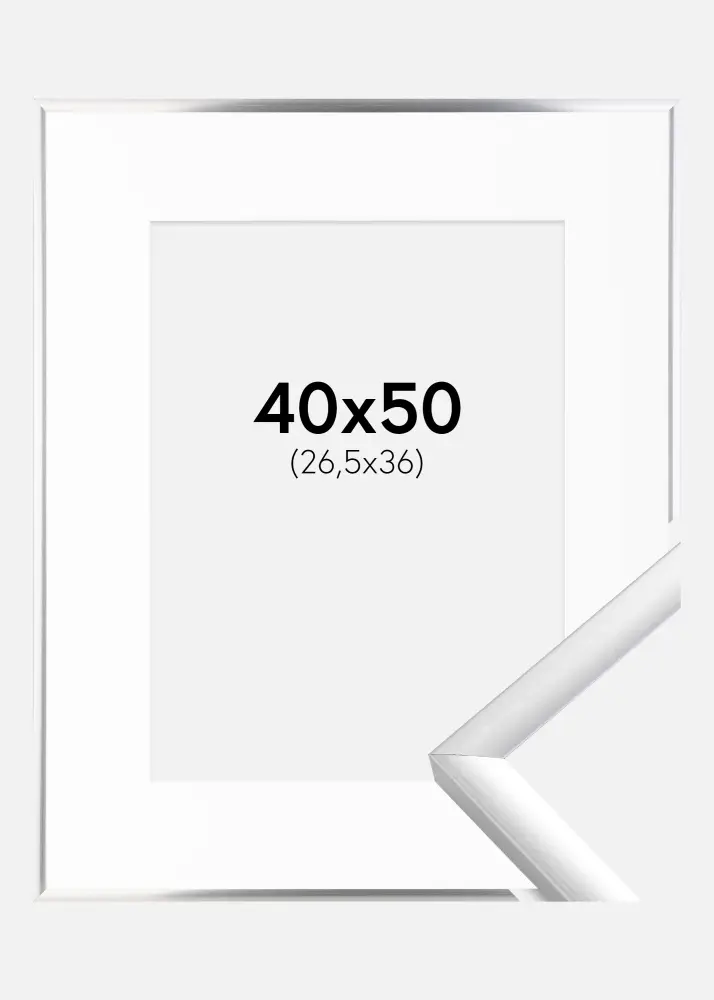 Cadre New Lifestyle Argent 40x50 cm - Passe-partout Blanc 27,5x37 cm