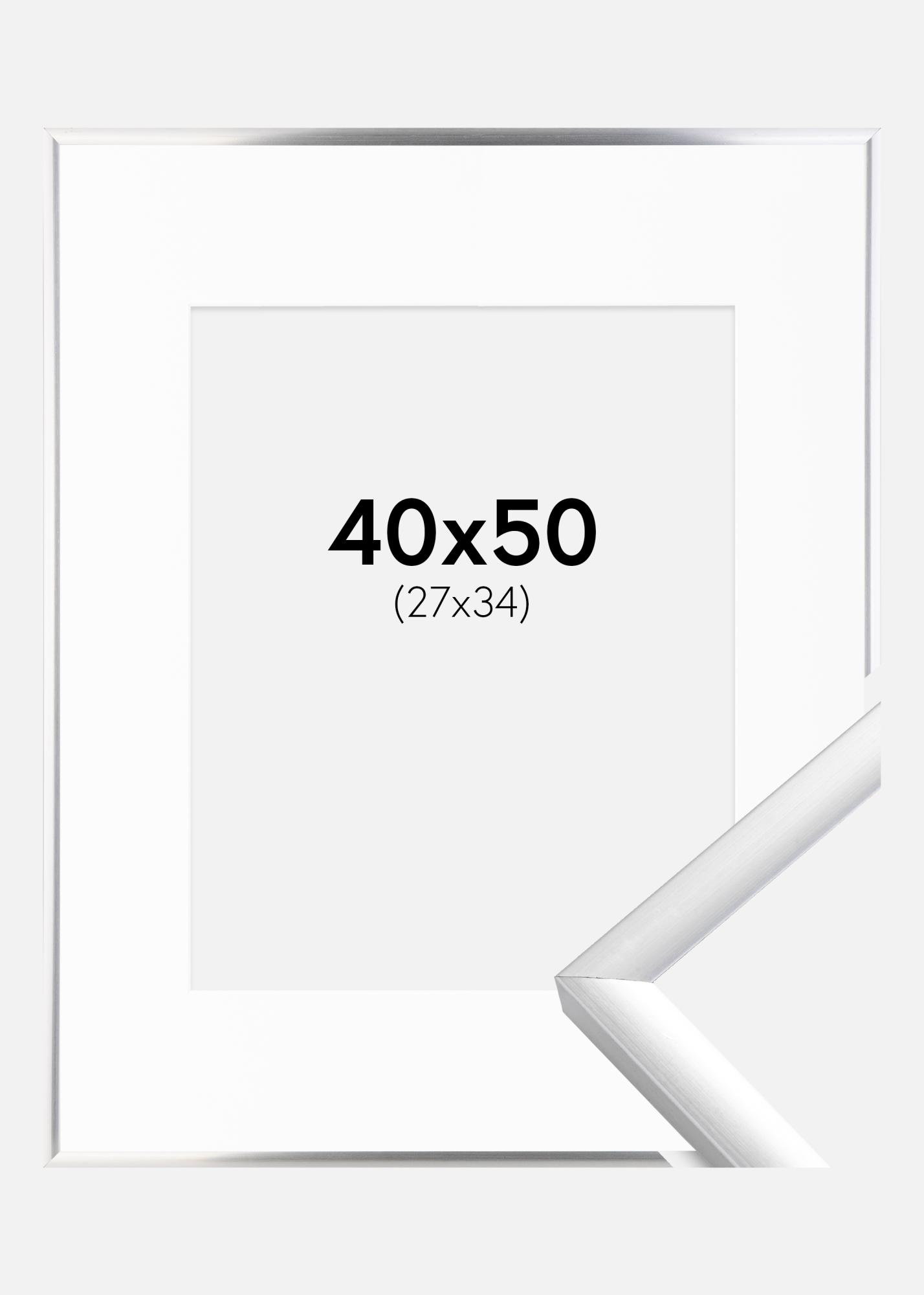 Cadre New Lifestyle Argent 40x50 cm - Passe-partout Blanc 28x35 cm