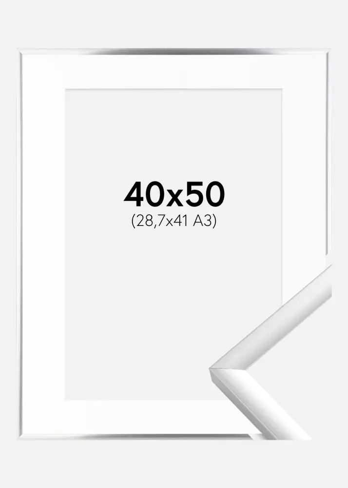 Cadre New Lifestyle Argent 40x50 cm - Passe-partout Blanc 29,7x42 cm (A3)