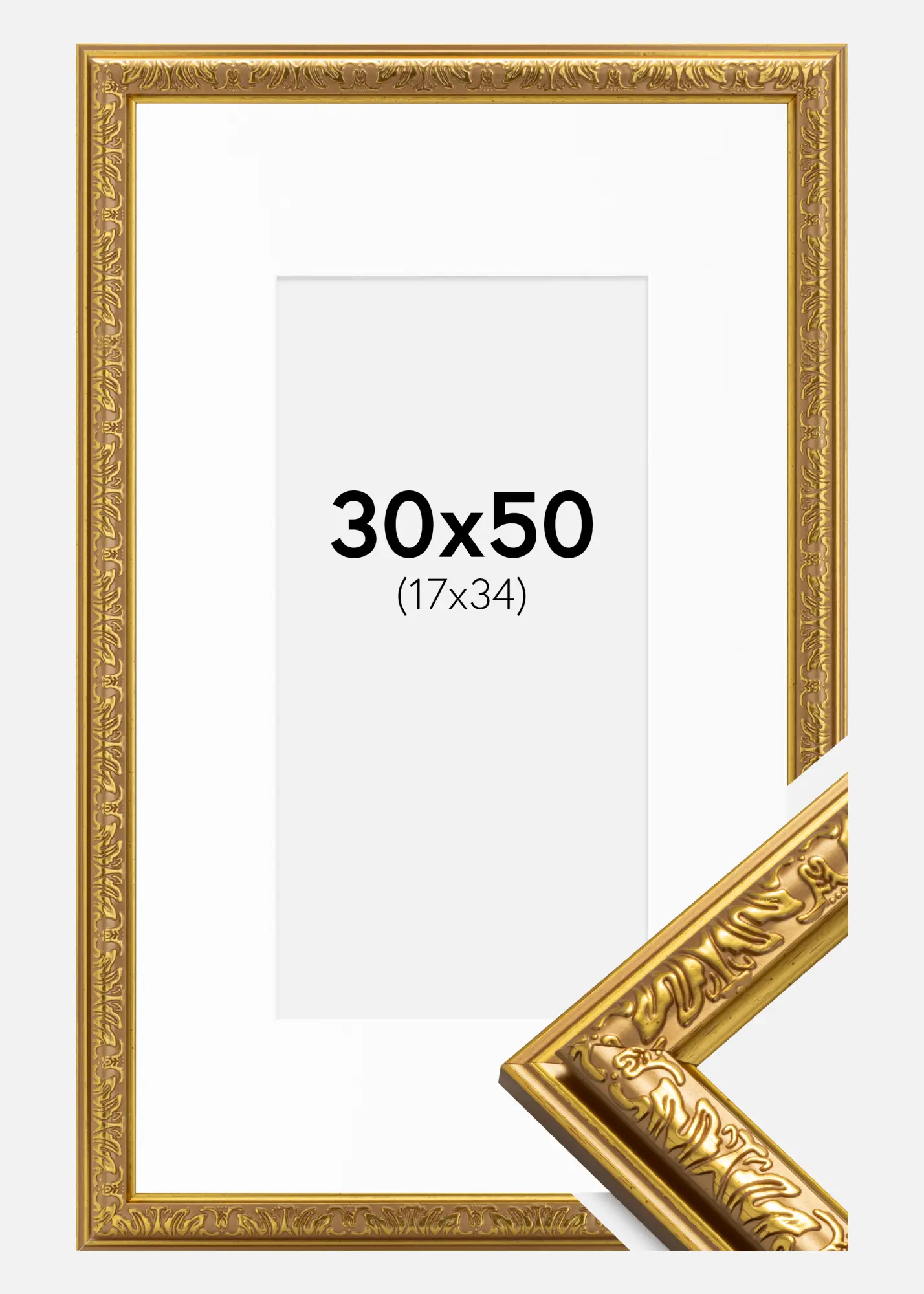 Cadre Nostalgia Or 30x50 cm - Passe-partout Blanc 18x35 cm
