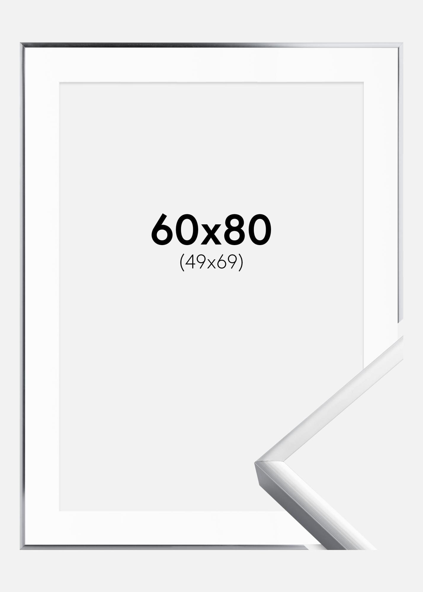 Cadre Poster Frame Aluminum Argent 60x80 cm - Passe-partout Blanc 50x70 cm