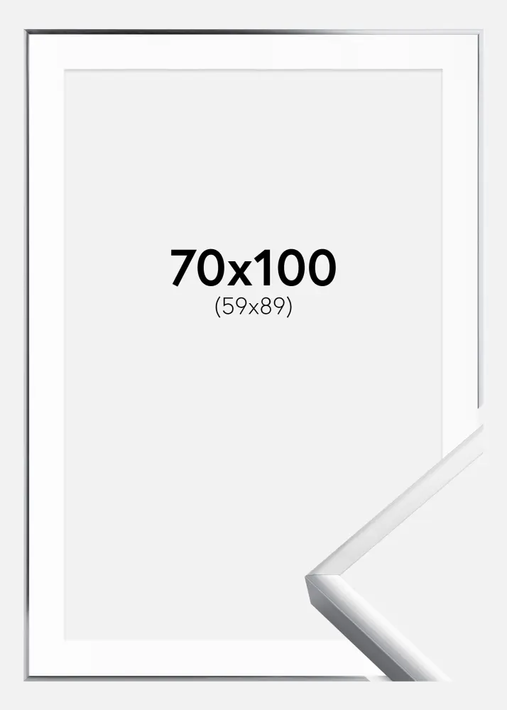 Cadre Poster Frame Aluminum Argent 70x100 cm - Passe-partout Blanc 60x90 cm