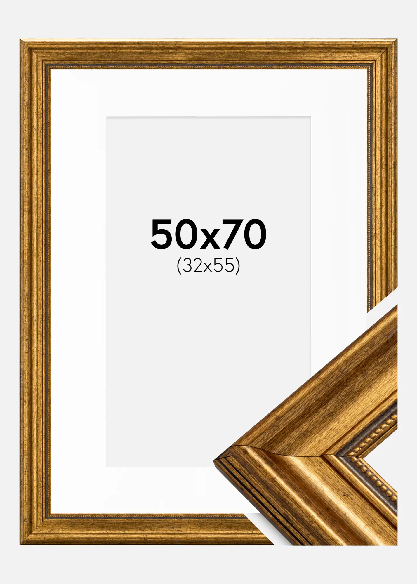 Cadre Rococo Or 50x70 cm - Passe-partout Blanc 33x56 cm