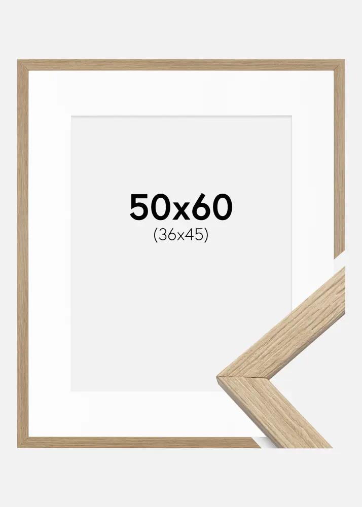Cadre Stilren Verre acrylique Chêne 50x60 cm - Passe-partout Blanc 37x46 cm