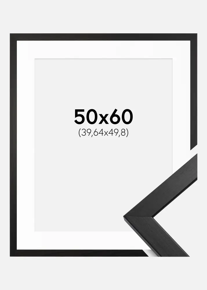 Forfait comprenant le cadre photo et le passe-partout blanc assorti. Sur la photo du produit, vous pouvez voir les dimensions du cadre (indiquées en gras) et les dimensions intérieures du passe-partout (indiquées entre parenthèses). Notez que les dimensions intérieures du passe-partout se doivent d'être toujours 1 cm inférieures par rapport à la taille de l'image que vous souhaitez encadrer.