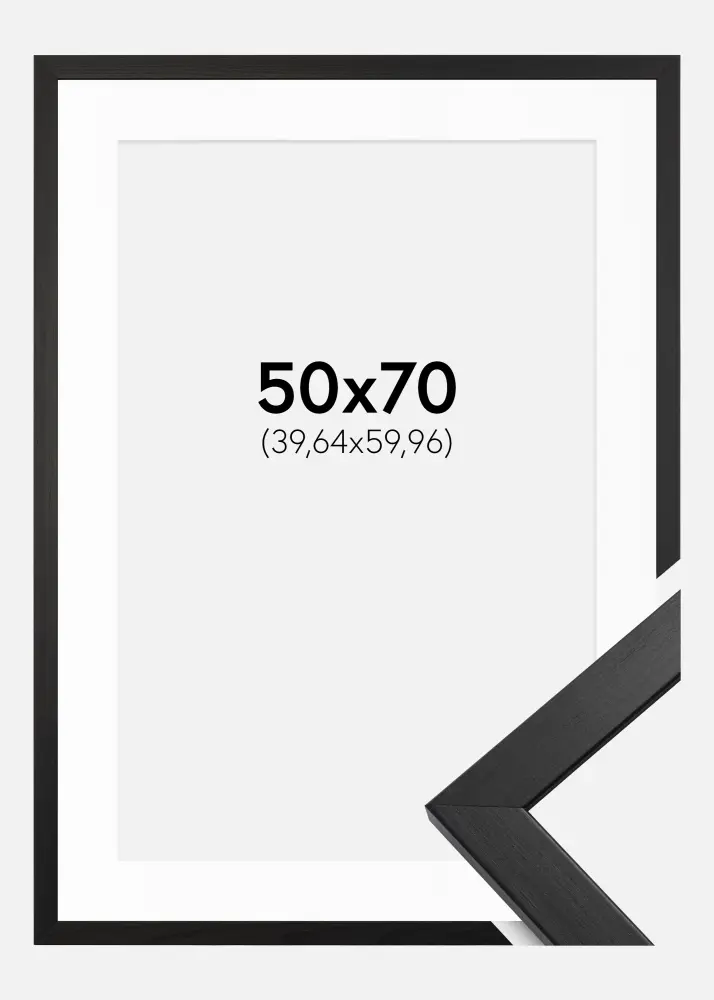 Forfait comprenant le cadre photo et le passe-partout blanc assorti. Sur la photo du produit, vous pouvez voir les dimensions du cadre (indiquées en gras) et les dimensions intérieures du passe-partout (indiquées entre parenthèses). Notez que les dimensions intérieures du passe-partout se doivent d'être toujours 1 cm inférieures par rapport à la taille de l'image que vous souhaitez encadrer.
