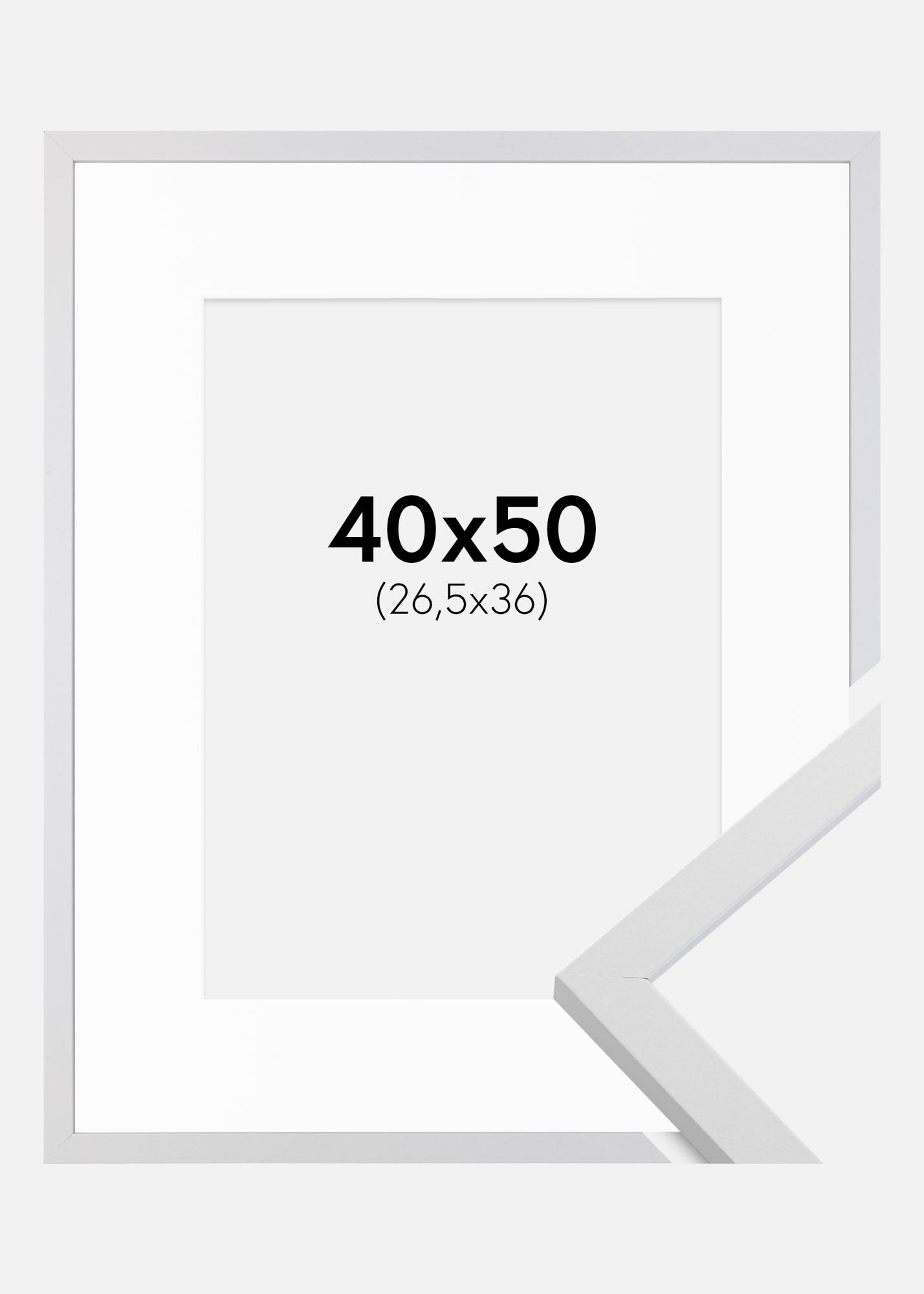 Cadre Trendy Blanc 40x50 cm - Passe-partout Blanc 27,5x37 cm