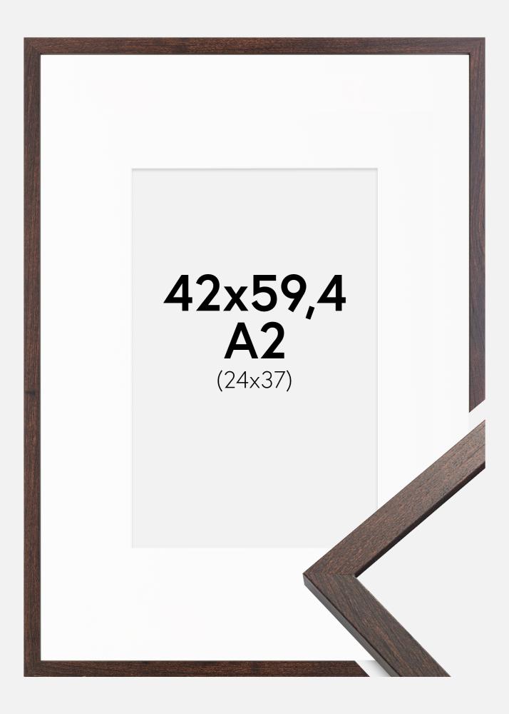 Cadre Trendy Noyer 42x59,4 cm (A2) - Passe-partout Blanc 25x38 cm