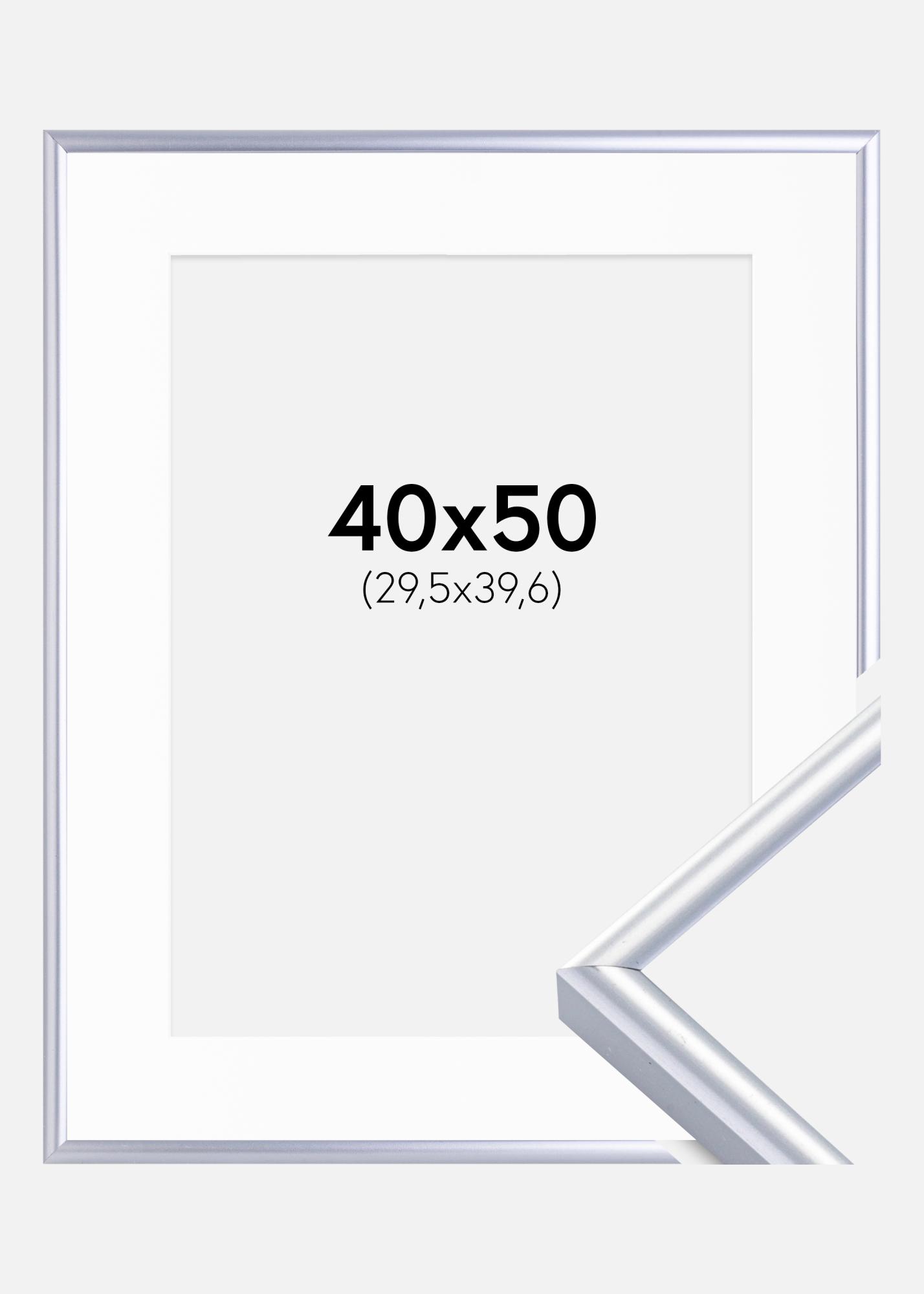 Cadre Victoria Argent 40x50 cm - Passe-partout Blanc 12x16 pouces