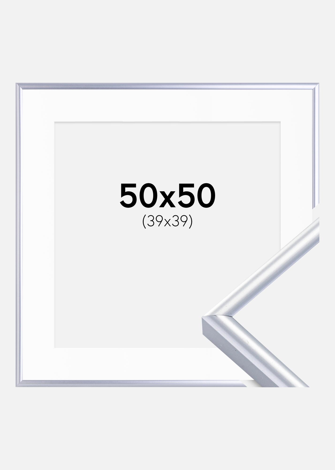 Cadre Victoria Argent 50x50 cm - Passe-partout Blanc 40x40 cm